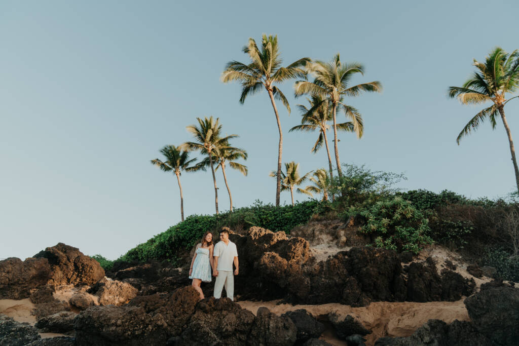 Oneloa Beach’s rocky landscape adds an adventurous touch to your photos, capturing the untamed beauty of Maui’s western coastline. From the cliff overlooking the shoreline to the dramatic waves and unique rock formations, it creates a textured and dynamic backdrop for photos.