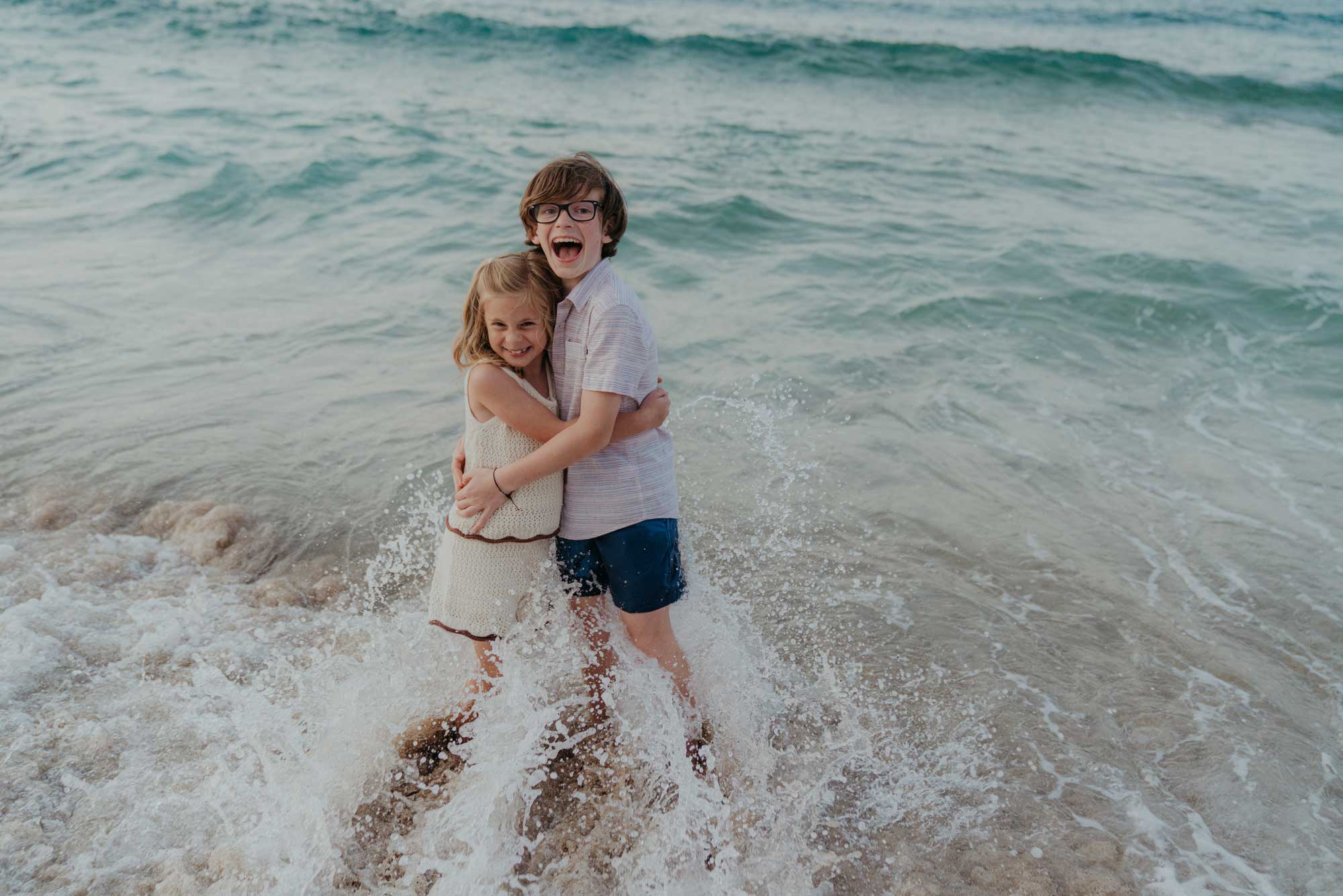 What followed wasn’t about getting through a checklist of poses. It was more about letting the four of them settle into the space together. Walking along the shoreline, pausing when something caught the kids’ attention, staying a little longer when the light softened.