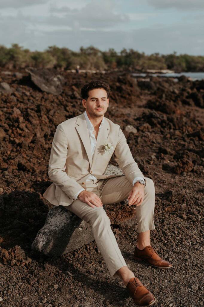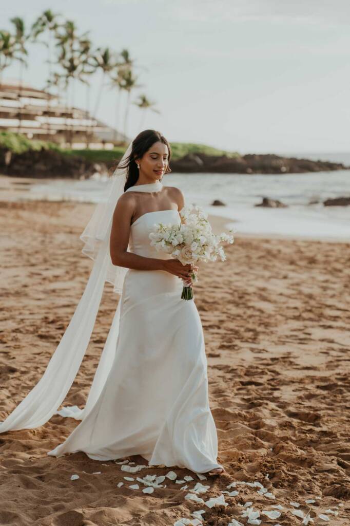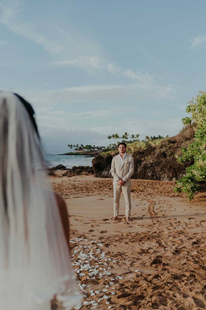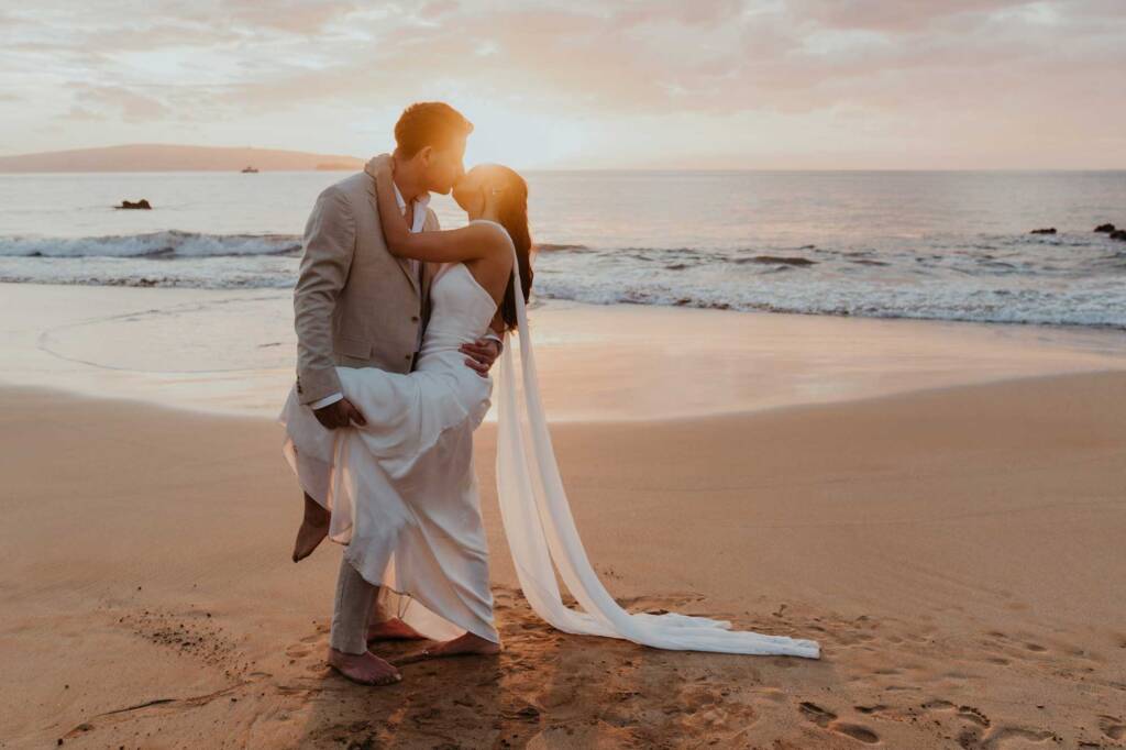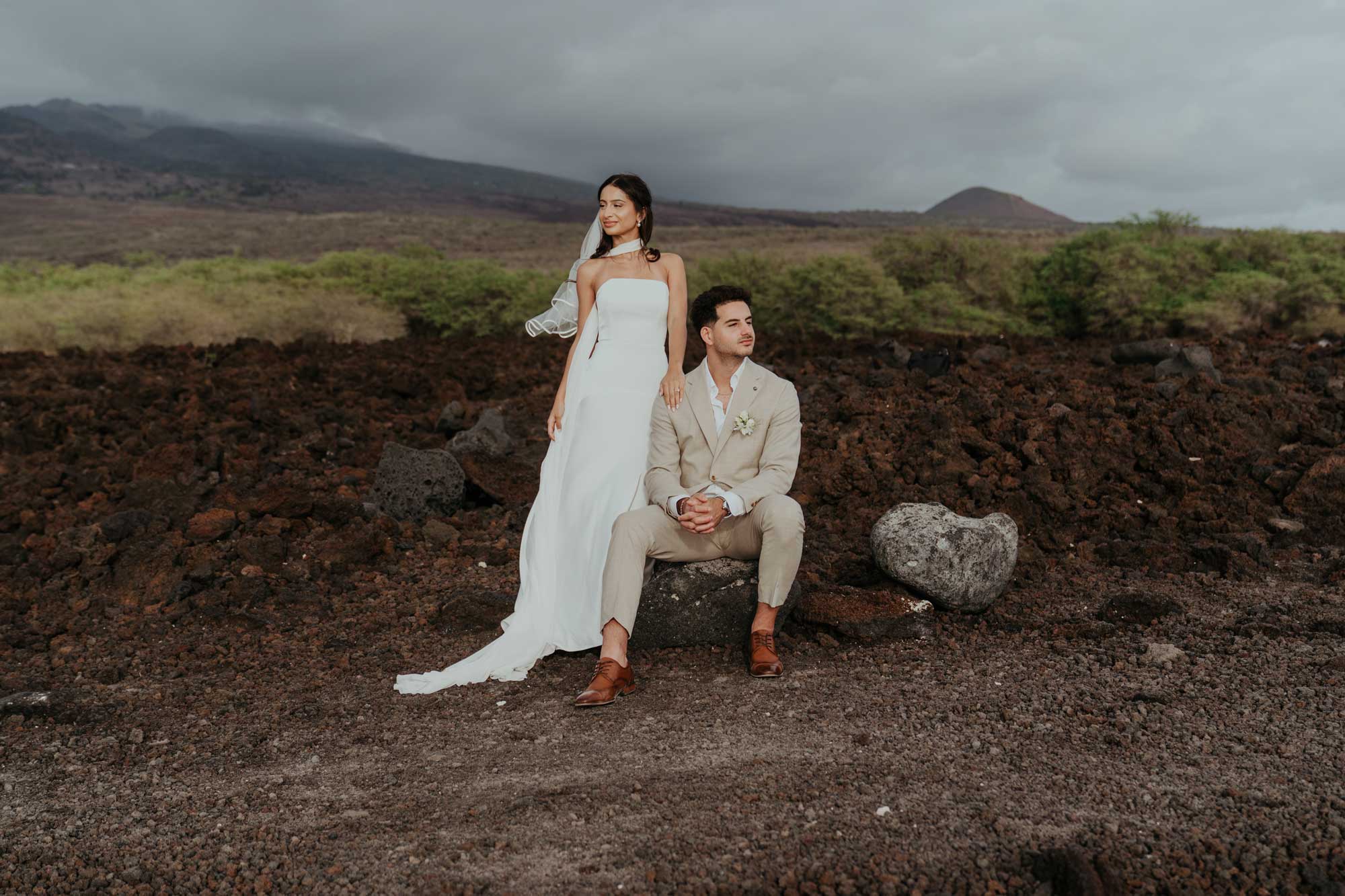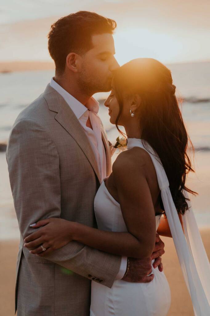 Their elopement unfolded across two locations in South Maui, blending dramatic volcanic scenery with a quiet beach ceremony at sunset.
