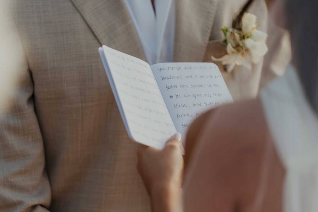 No guests. No distractions. Just vows written on paper, exchanged slowly, and a ceremony centered on presence rather than performance.