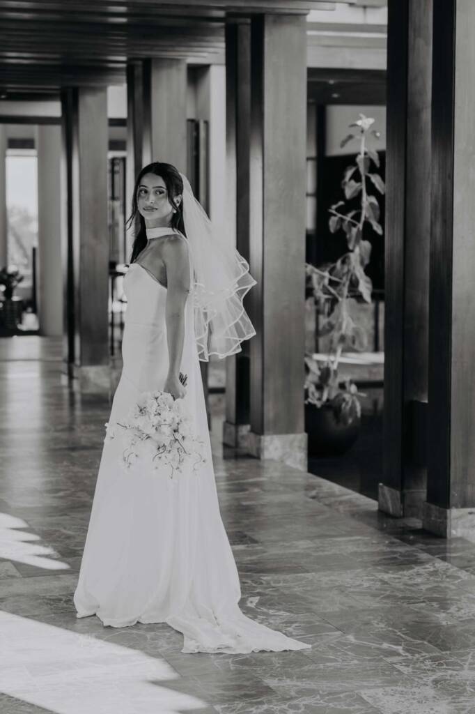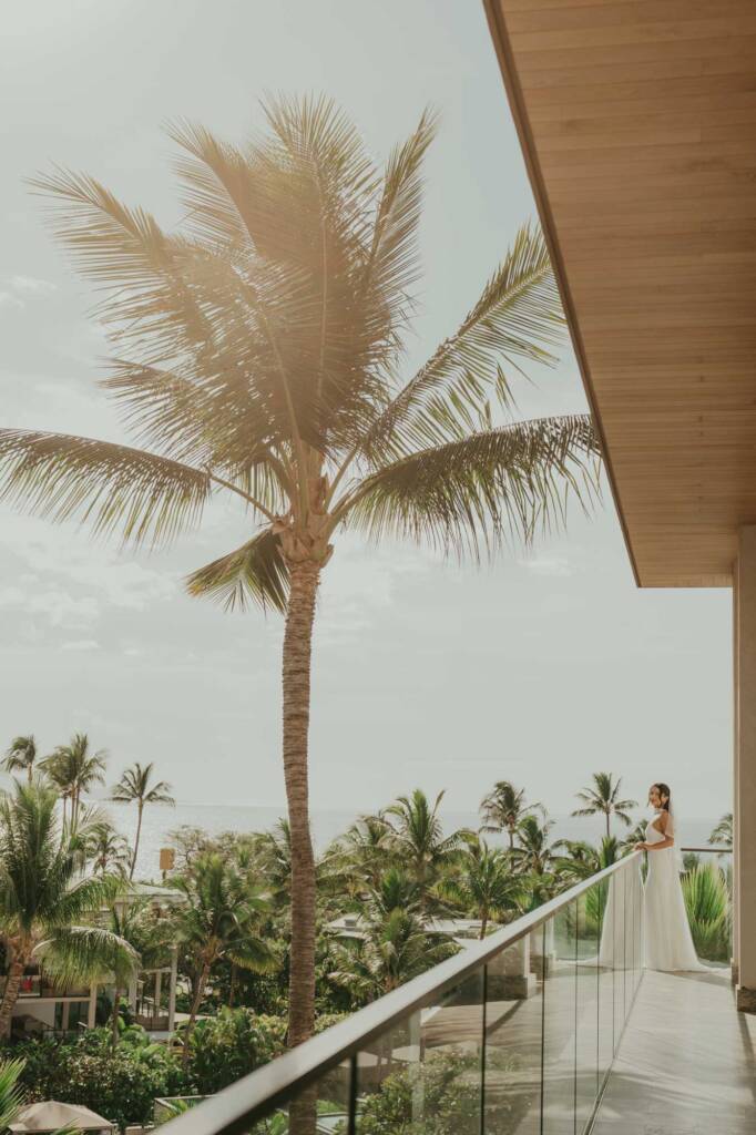 The afternoon began at the Andaz Maui in Wailea, where Jamie and Daniel got ready surrounded by the hotel’s clean lines, natural textures, and soft island light. We spent time capturing quiet moments in the room, subtle details, and the calm anticipation before the day truly began. The lobby’s signature wooden arches and open-air design created a beautiful, grounded backdrop as Jamie made her way out, and from there we headed to pick her up for the first look, allowing them to arrive separately and experience that moment with intention and presence.