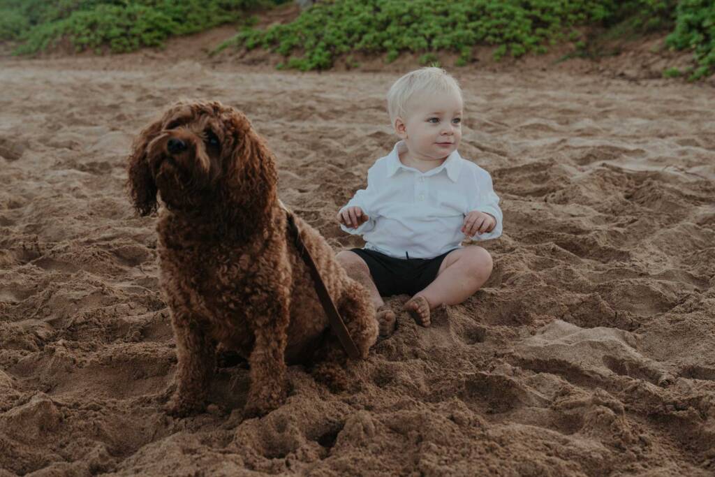 Family photography, especially with young children, works best when everyone is allowed to be. The beach gives kids space to explore, and the early morning quiet helps keep the energy grounded. The dogs became part of the session too, weaving in and out of frames, adding another layer of real life to the images.