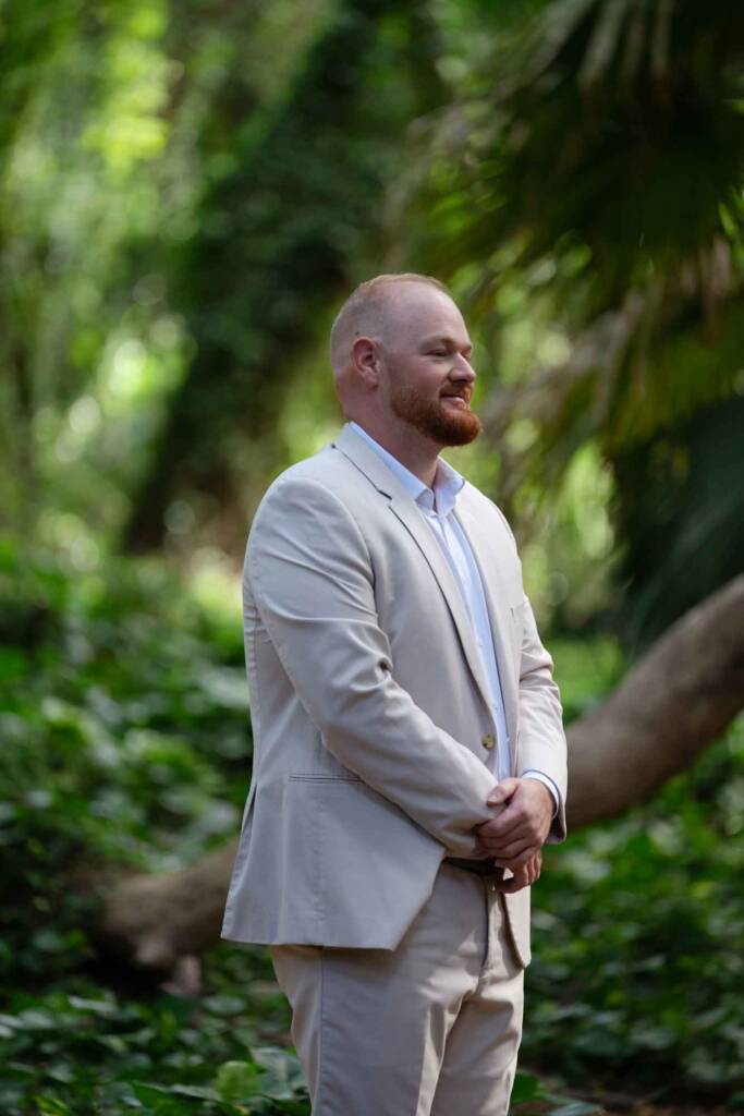 The forest created a completely different atmosphere from the beach. Dense greenery. Filtered sunlight through branches. A sense of privacy that allowed them to simply be together for a few minutes before the ceremony.
