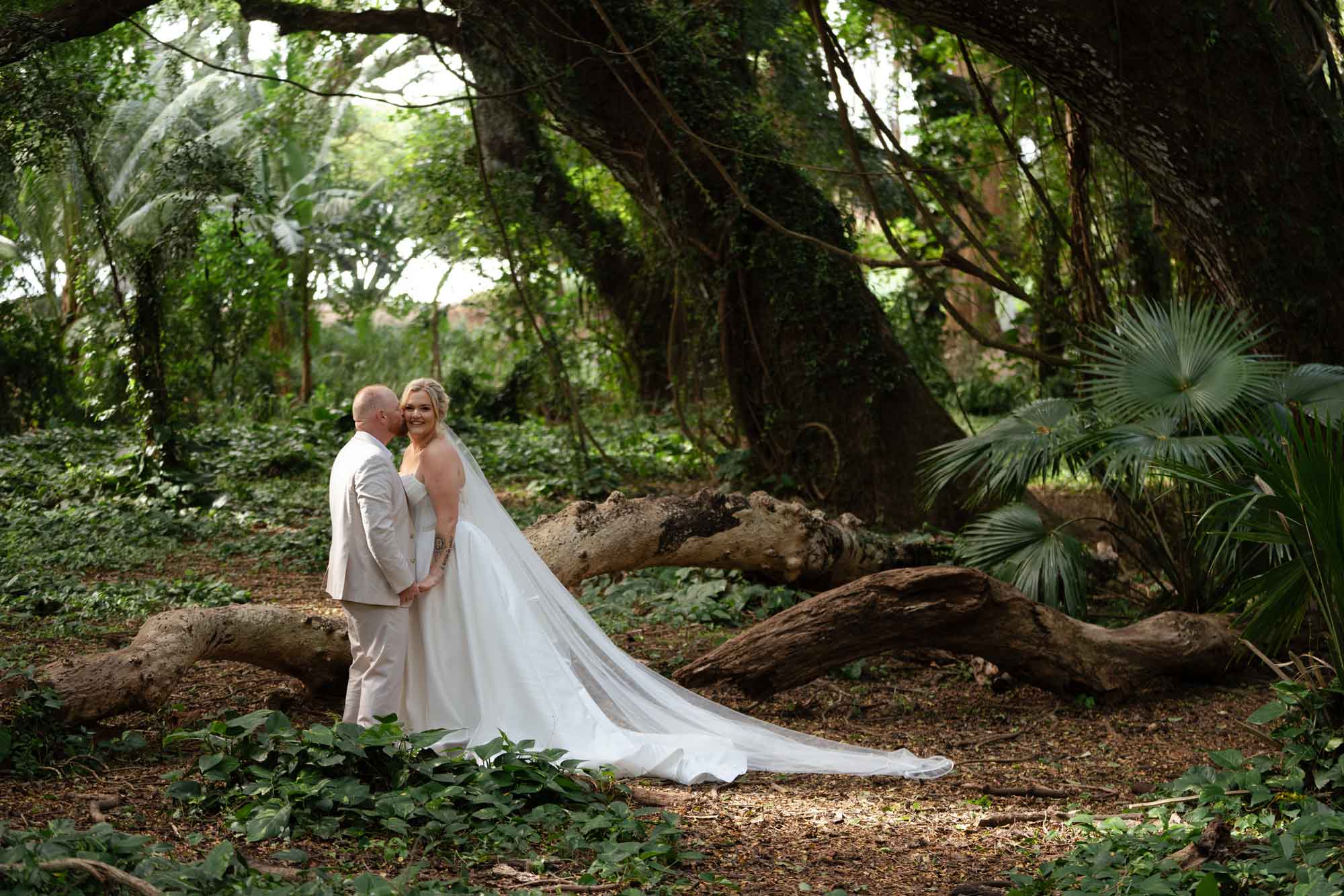 A Beach Ceremony with Hawaiian Traditions and a Forest First Look